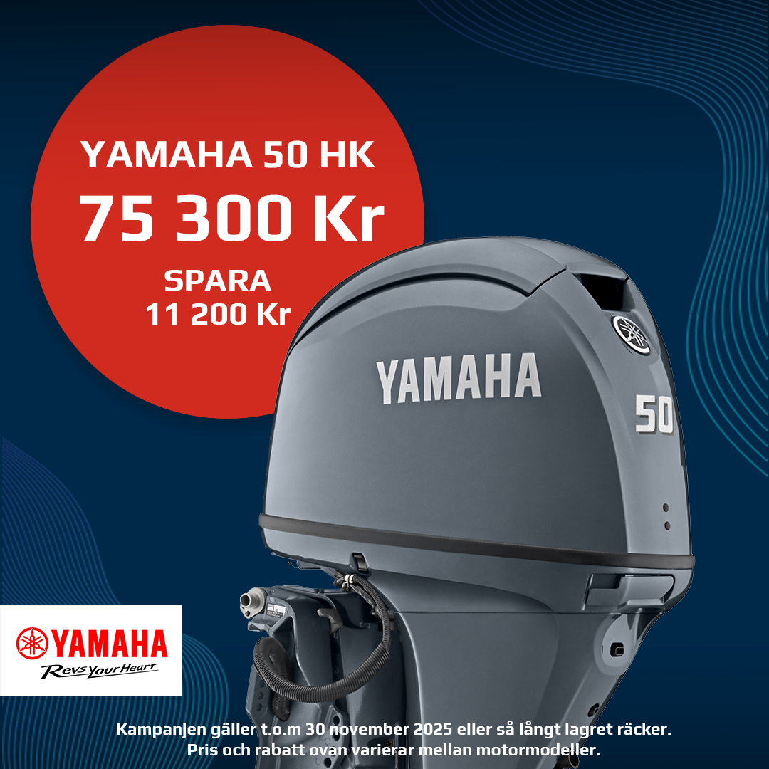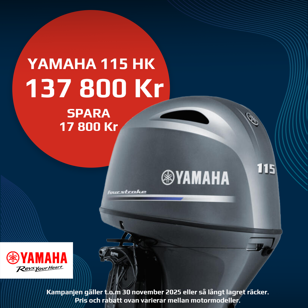 Just nu finns det en Yamaha 115hk för 137 800kr (spara 17 800kr) och en Yamaha F50 för 73 300kr (spara 11 200kr) för omgående leverans & montering.